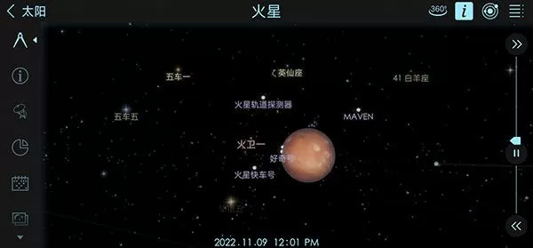 你将看到人造卫星飞过地球以及火星探测车在红色星体上移动。每个任务的每个著名事件都在日历中待你探索。