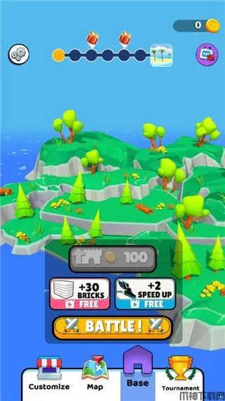 1、收集砖块,升级城堡,让你的弓箭手保护自己,成为最后一个站着的人;