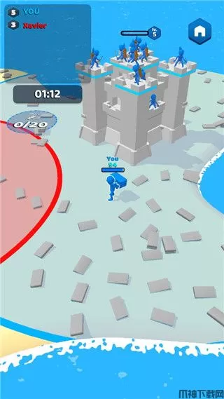 3、玩家需要捡起地上的方块建筑城堡,然后让自己的地盘原来越大。