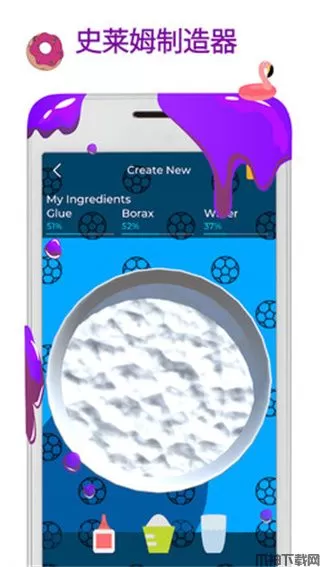 4、使用DIY史莱姆制造器制作自己的史莱姆粘液,混合你喜欢的粘液类型,添加一种颜色,并洒上彩色糖屑和亮粉;
