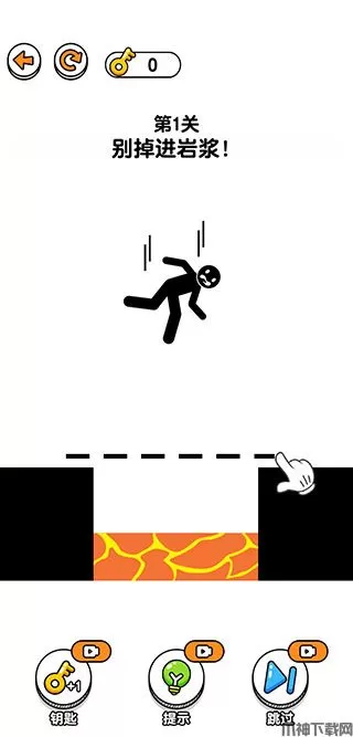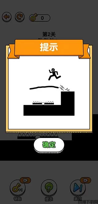 6、如果多次尝试仍然无法避免火柴人落入陷阱。