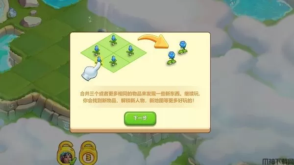 2、合并三个或者更多相同的物品来发现一些新东西。继续玩,你会找到新物品,解锁新人物,新地图等更多好玩的。
