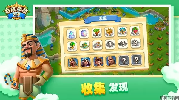 1、合成消除,通过关卡,解锁新的文明。