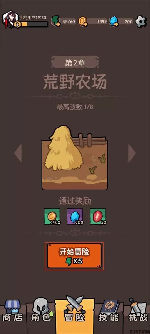 1、打开我的技能无限触发游戏,点击开始冒险进行闯关;