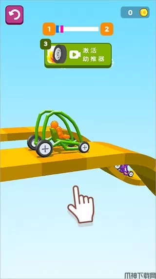 4、开始游戏后点击屏幕开始加速,如果车子翻倒,你不用担心一直点击屏幕加速车子还是能够前进,想赢得比赛必须将车子合理的组成。