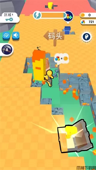 1、操作摇杆控制角色的方向,靠近矿区会自动开始挖矿。