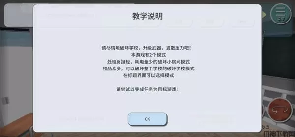 6、总之在游戏中玩家可以随意的破坏,里面有有两个模式可以体验,处理负担轻,耗电量少的破坏小房间模式;物品众多,可以破坏整个学校的破坏学校模式,玩家可以随意选择;