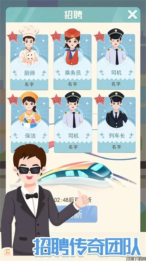 此外,模拟高铁集团游戏提供了各种员工,你可以招聘人员,面试人员,给各班次高铁配备优质团队,为顾客带来顶级体验。总之,模拟高铁集团游戏简约卡通的画面,还原真实高铁出行场景,不断发展壮大集团,打造属于你的高铁帝国吧!