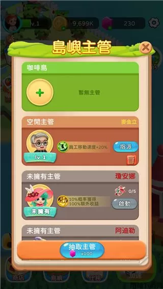 4、还可以召唤员工进行采集和经营小岛;