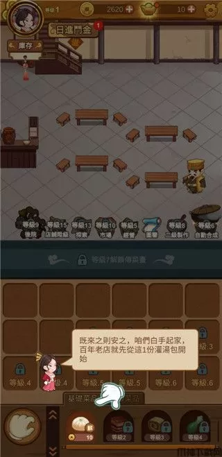 2、这里会有剧情介绍,既来之则安之,咱们白手起家,百年老店就先从这1份灌汤包开始;