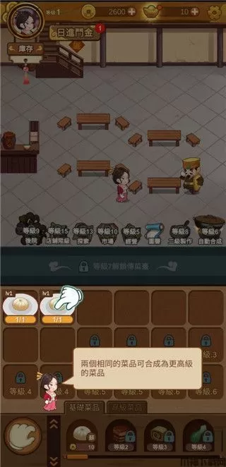 3、两个相同的菜品可合成为更高级的菜品;