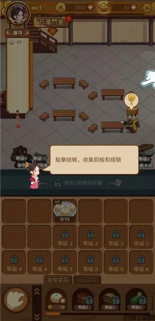 5、点击结帐,可以收集铜板和经验;