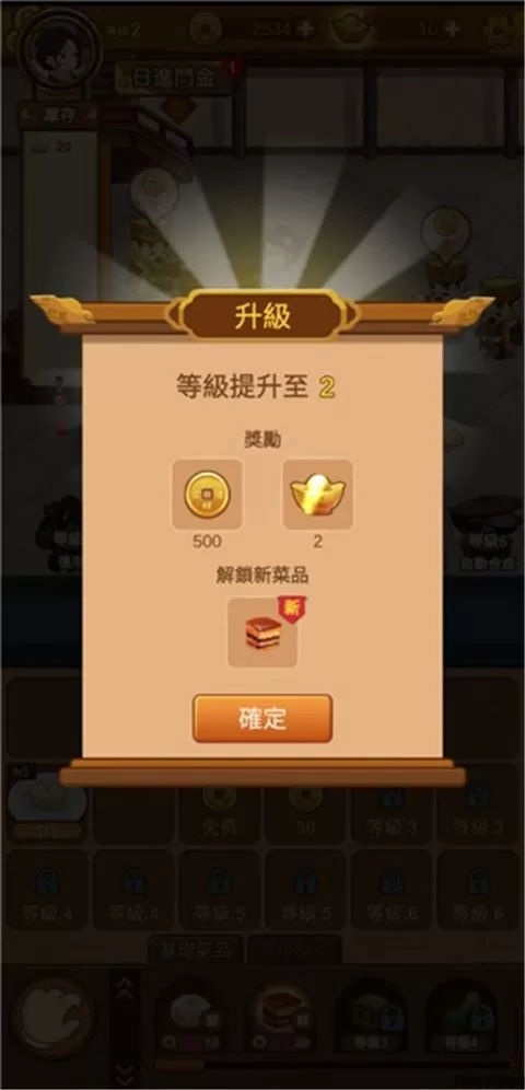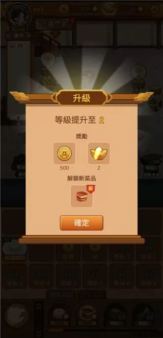 6、达成成就后便可升级,然后可以获得奖励和解锁新菜品,除此之外,游戏中还有很多玩法等着玩家下载体验。