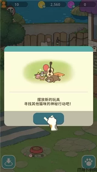 1、在本站下载安装并打开神秘猫咪字典游戏,进入游戏,玩家需要在固定的地方放置玩具和食物来吸引猫咪。