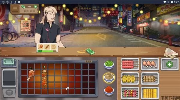 游戏中玩家可以在夜幕落下时分在夜市中经营自己的烧烤摊,还可以生产美味的食物吸引更多的顾客,赚更多的钱,游戏带有一定养成元素,由玩家扮演烧烤摊主,需要收集顾客订单、根据顾客需求制作的食物中加入各种配料,以满足顾客的需求。