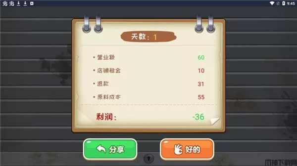 6、一天结束后就可以看到自己的利润啦,然后便可进行下一天的摆摊啦。
