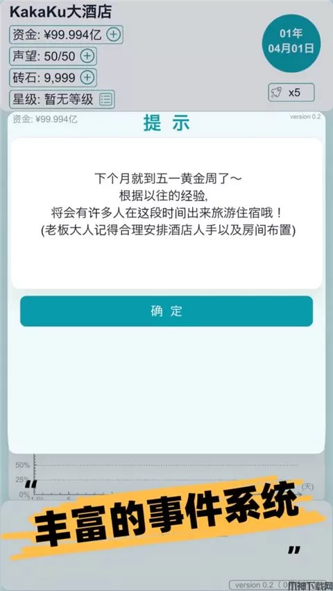 游戏内设计了许多事件,以至于让玩家不会觉得无聊~~玩家需要处理各式各样的突发情况,以使得酒店步入正轨,避免倒闭