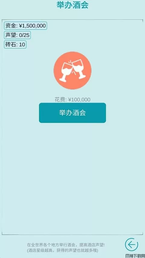 具备了以上要素,想要获得更多客流量,营销就变得非常重要!通过游戏内的“酒会”功能,可以提高酒店声望,当酒店星级越高,获得声望也就越高。举办酒会,能够快速拓展你酒店的影响力,继而带来更多客流量。