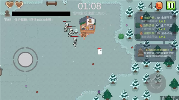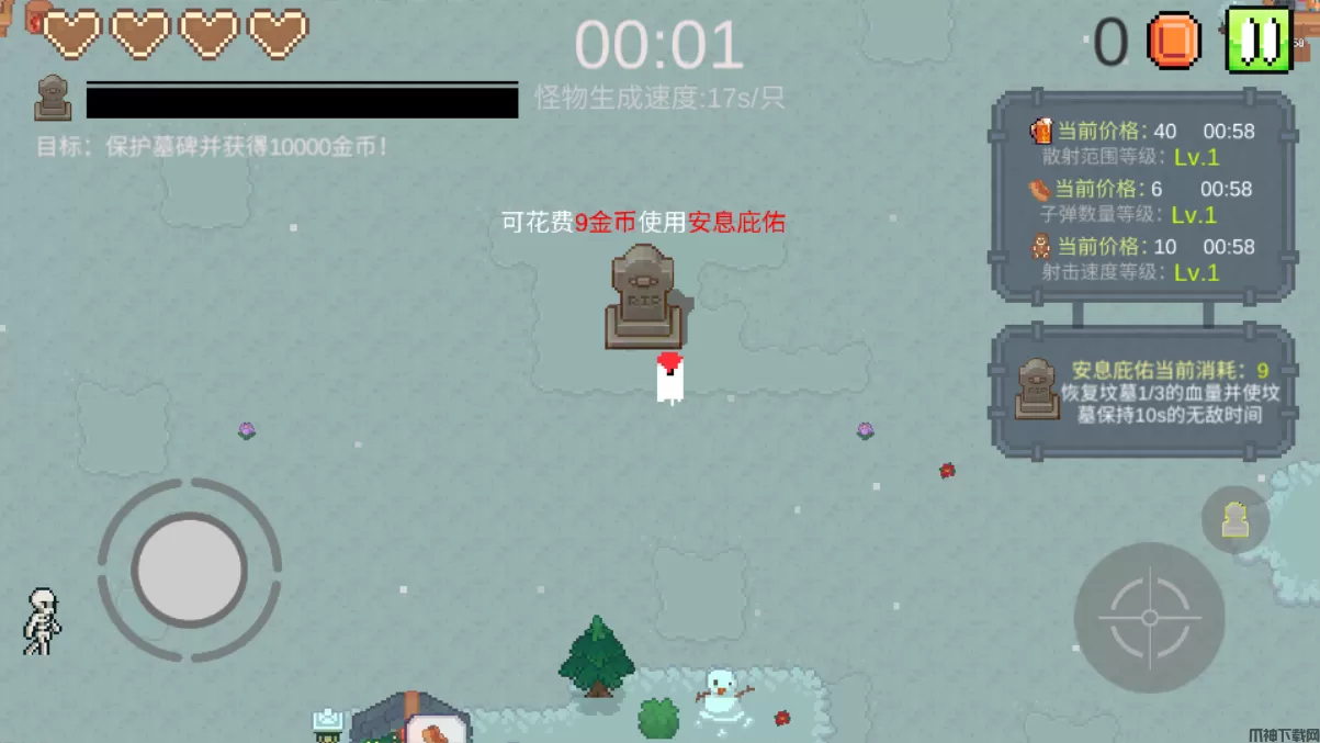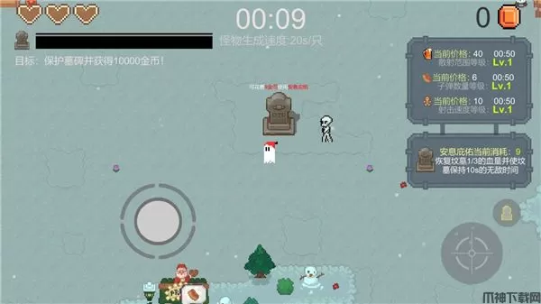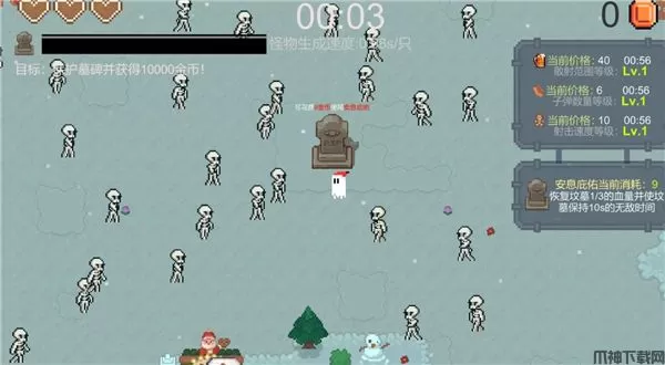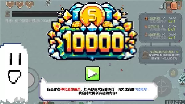一万金币手游是一款别开生面的像素风格动作防御游戏,玩家将扮演一只可爱的小幽灵,负责守护着一座重要的墓碑免受不断涌来的僵尸袭击。
