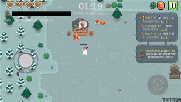 一万金币手游是一款别开生面的像素风格动作防御游戏,玩家将扮演一只可爱的小幽灵,负责守护着一座重要的墓碑免受不断涌来的僵尸袭击。随着时间推移,僵尸的数量将逐渐增加,考验玩家的反应速度和策略规划能力。在战斗中,玩家需要不断击败僵尸,每次击败将获得金币奖励,通过这些金币可以在附近的商店购买各种武器和道具,如弓箭、炸弹等,来提升自身的战斗能力。游戏采用简单直观的操作方式,加上紧张刺激的战斗节奏和丰富多样的武器选择,为玩家带来了一场充满挑战和乐趣的幽灵保卫战。最终目标是在成功守护好墓碑的同时,累积获得一万金币,成为游戏的最终胜利者。