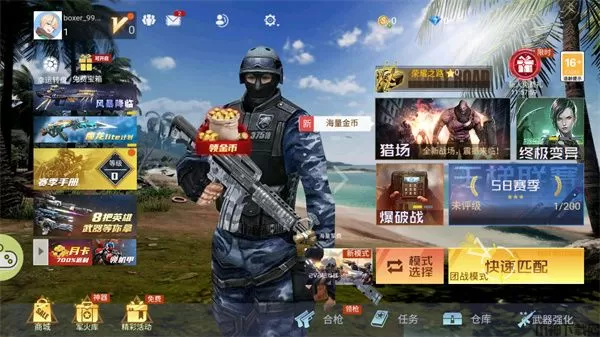 1、首先我们进入生死狙击之僵尸前线游戏中,游戏有多种模式可以进入,比如:猎场、终极变异等等,小编进入的是“快速匹配”;