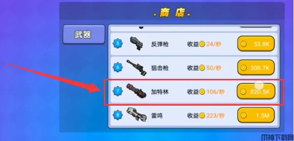 3、接着在商店中购买6把加特林,如下图所示: