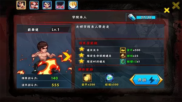 1、下载并打开游戏后即可进入初始角色lee的剧情关卡,通关基础剧情关卡后来到下方界面