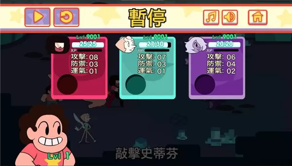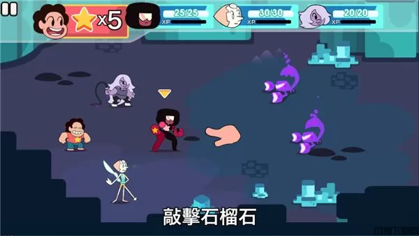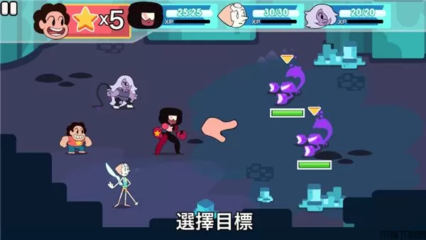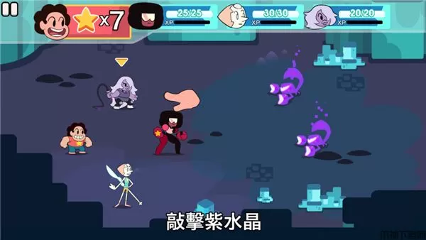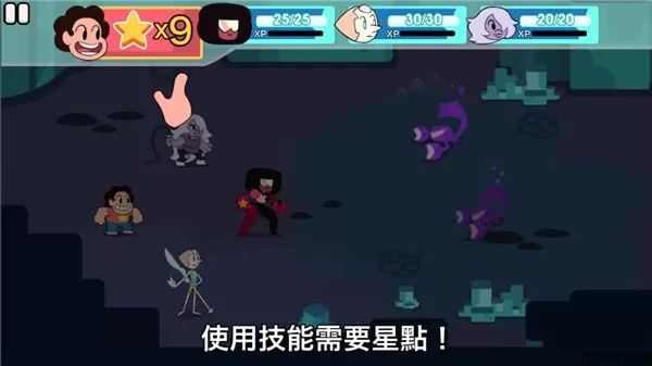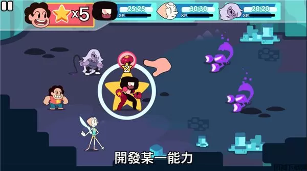 击光明史蒂芬宇宙是根据经典动画《史蒂芬宇宙》改编而成来的一款回合制冒险闯关游戏,采用了经典卡通的画风设计,巧妙的将休闲问答玩法与动作冒险玩法相结合,新颖独特的闯关玩法带给你一场独特的冒险之旅,游戏操作简单易上手,玩家需要与石榴石、珍珠、紫水晶等三位小伙伴一起前行拯救世界,在各种各样的主题风格中探索挑战,通过以策略和问答的形式展开,且每一个回合攻击战术模式不限定,可根据行动点数采取不同的战斗策略,以获得最强的的战斗输出,快速的完成挑战任务,从而成功解锁宝箱收集多种不同的辅助装备,提升英雄武力升级强化,学习新技能,体验不一样的游戏乐趣。