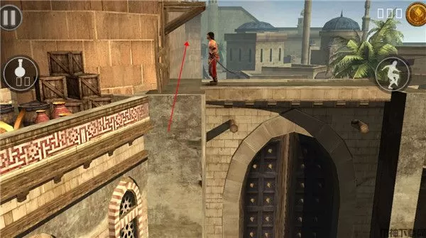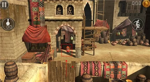 3、想爬上货架或阳台等地方只需控制角色来到下来,用手指向上滑动屏幕就行,角色会自动爬上去