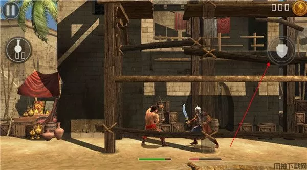 7、点击右边盾牌按钮可以进行防御,敌人处于防御状态的时候不要攻击,不然会被直接格挡反击