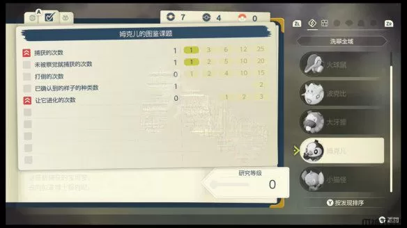 抓到宝可梦时,图鉴相关的研究课题也会提升。提高研究水平与银河队的等级直接相关,所以对比本传作品,在“阿尔宙斯”中玩家往往需要捕捉更多的宝可梦。