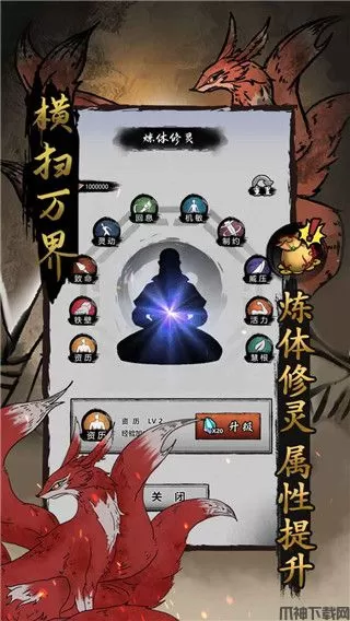 三大核心养成:神威强化、炼体修灵、神兵铸魂。在游戏中可以通过击杀怪物收集灵石来提升自身经验,并且可以升级人物属性,强化武器装备。