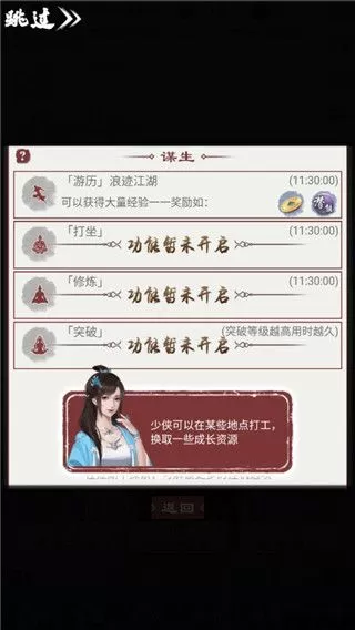 4、缺少资源时,可以选择谋生来获取任务,完成任务可以获得各种奖励。