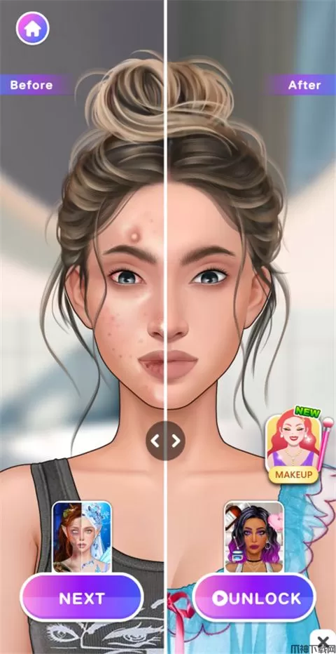 尤雅美妆改造乐园(YoYa Makeup)是YoYa系列的一款休闲解压游戏,玩家将扮演一名化妆师,帮助用户进行面部改造,过程中你需要使用各种清洁工具处理痘痘、毛孔、死皮等问题的同时,继续为其化妆、换服装进行改造,以打造全新的脸部形象,且游戏