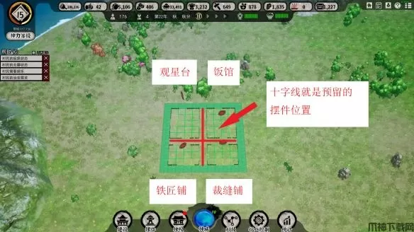 这四种建筑可以激活天工和机关的套装属性,建造在一起作为一个模块就非常合适,中间预留空间摆放摆件,也不会因为后期添加摆件占用其他建筑的规划用地。
