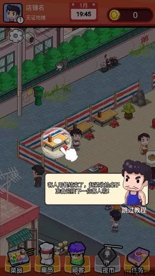 地摊食神官方版版采用了经典的放置式点击玩法,操作简单,玩家全程不但仅靠一根手指便可进行餐厅卫生打造、顾客点餐招待、上菜等完成任务。同时跟随着客人数量的增加,口味变得愈发不同,大家也还可以寻求新的食材,通过菜谱的研究,开发新的菜系,甚至是招募并培养优秀的店员制作美味的料理,或聘请收银,增加结账效率等提升服务,吸引更多的顾客光临,增加店铺的人气,从而打造你的地摊王国,直至成为地区中人气第一的地摊食神哦!