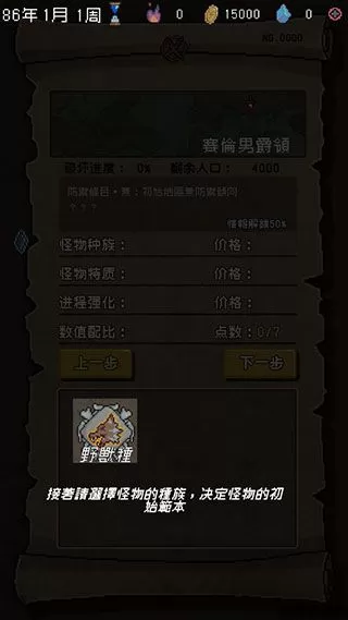 5、接下来就是帮助怪物选择其出身的种族,以及初始的攻击力和其他。