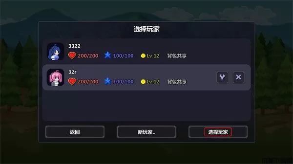 4、选择刚创建角色,在点击选择玩家;