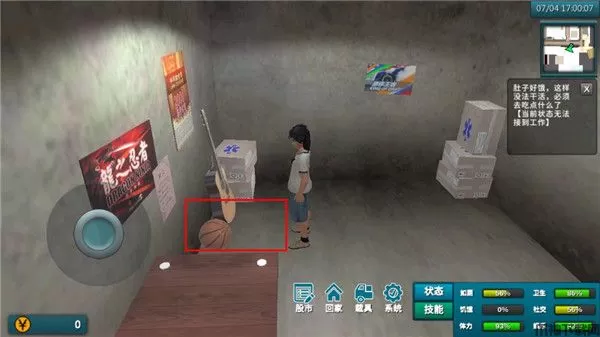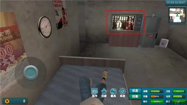 2、打开电视,会有不同的画面,打开冰箱吃东西,吃完东西饥饿值会回升。