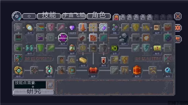4、选择一个角色,提升他的技能,在太空中找到有价值的组件来解锁新的能力;