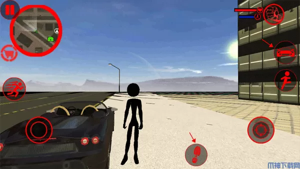 3、当火柴人靠近一辆时,右边就会自动出现一个汽车的图标,这个是帮助火柴人上车的功能键。