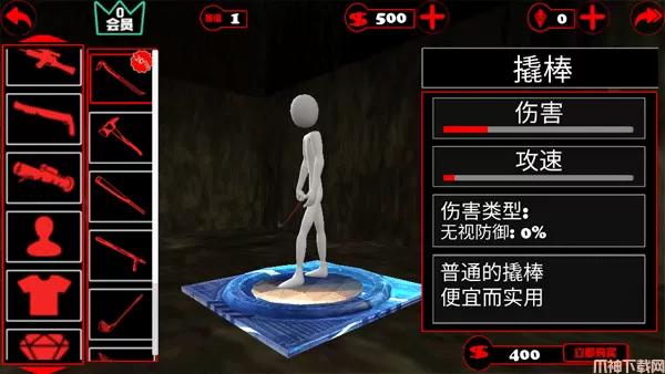 3、强化火柴人的属性,配置强力的装备武器,一夫当关万夫莫开抵挡敌人;