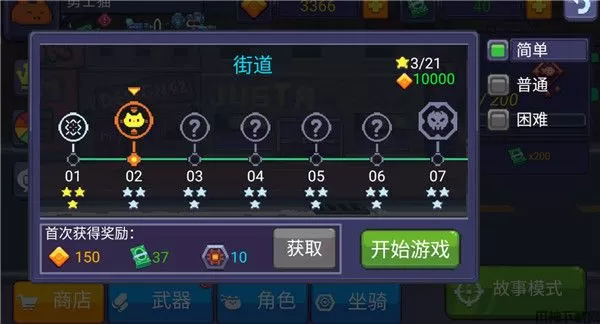 2、选择游戏关卡以及难度后,点击开始游戏