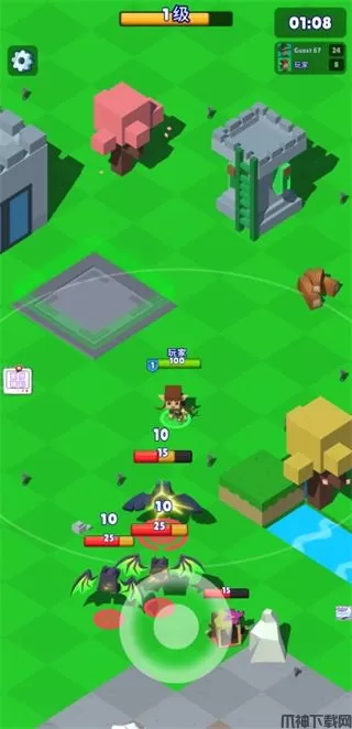 1、通过拖拽屏幕可以控制角色的移动,按住屏幕即可完成射击。