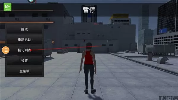 4、选择菜单可以查看已经解锁了的各种跑酷技巧。