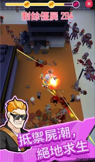 1、死者的哀悼在街道上响起,被毁的城市到处都是凶手;只有通过不断消灭死者和恢复城市才能生存。在这个残酷的世界末日环境,至少还有英勇的战士不屈不挠的在保卫着这座城市,玩家将在这里同这些英勇的战术一起战斗,数以百记的僵尸不断的涌现。玩家需要操控现有角色,依靠走位不停射击,避免被僵尸围攻
