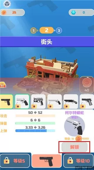 5、随着关卡等级的的通过,枪支逐步的升级,可以解锁更多更强的作战枪支