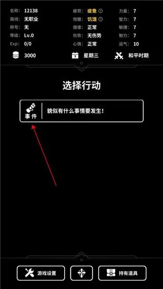 3、遇见特殊事件需要玩家自己根据想法选择。
