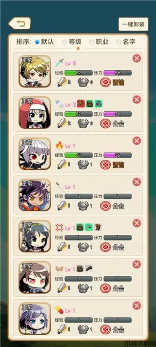 有了队伍,过图就没问题了,压力问题又来了,解决压力的办法就是替补队员,队伍中已经有了两个奶了,再做1个替补修女,每次至少上场两个奶,基本可以保证队伍奶量,不上场的人就酒馆喝喝茶,然后就是输出替补,如上,刺客,弩手,武士都可以作为输出替补培养一只,随着进度增加,每个职业建议都练一个,这样在boss战选择就更多了。