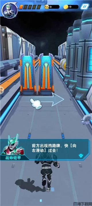 5、当前方的路被路牌挡死时,向下滑动即可穿过;